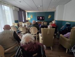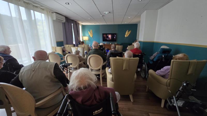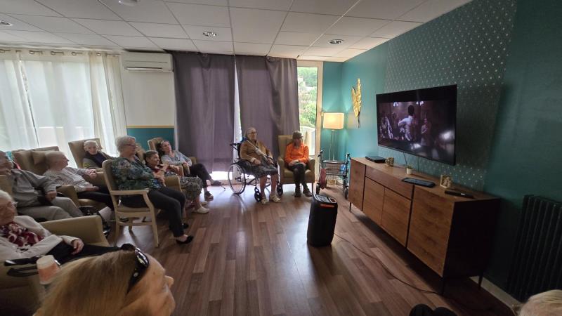 L'événement a eu lieu dans la grande salle tv de l'EHPAD. L’atmosphère était chaleureuse, et l'équipe a fait en sorte que chaque résident puisse profiter pleinement de la projection.