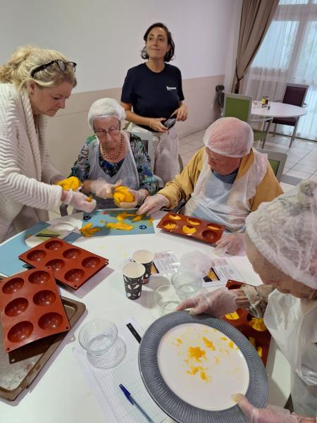 Sept de nos résidents ont participé avec une élaboration, le dôme Tropical, recette faite par le cuisinier en collaboration avec l’animatrice.
